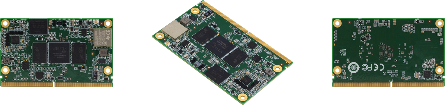 The modules’ specifications reflect their target application sectors, particularly with respect to the choice of display interfaces that can be used in conjunction with the Arm® Mali™-G57 GPU. Each module is equipped with HDMI 2.0, DP 1.4, and eDP 1.2, with an additional MIPI DSI connector available upon request. This grants users a broad choice to suit application need, while the combinations of said connectors allow for up to two simultaneous displays, one 4K and one 2K.