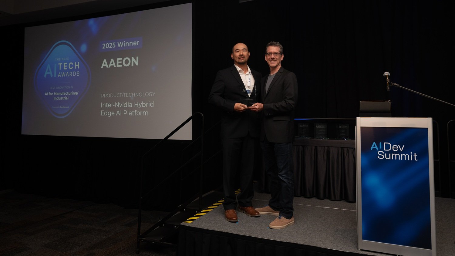 (Orange, California – May 30th, 2025) AAEON (Stock Code: 6579), a leading manufacturer of advanced industrial and embedded computing platforms, today announced its Hybrid Edge AI Computing Platform has been awarded a 2025 AI TechAward in the Intel-NVIDIA Hybrid Edge AI Platform category. The AI TechAwards recognize outstanding design, engineering, and innovation in developer technology across 20 categories within the software industry.