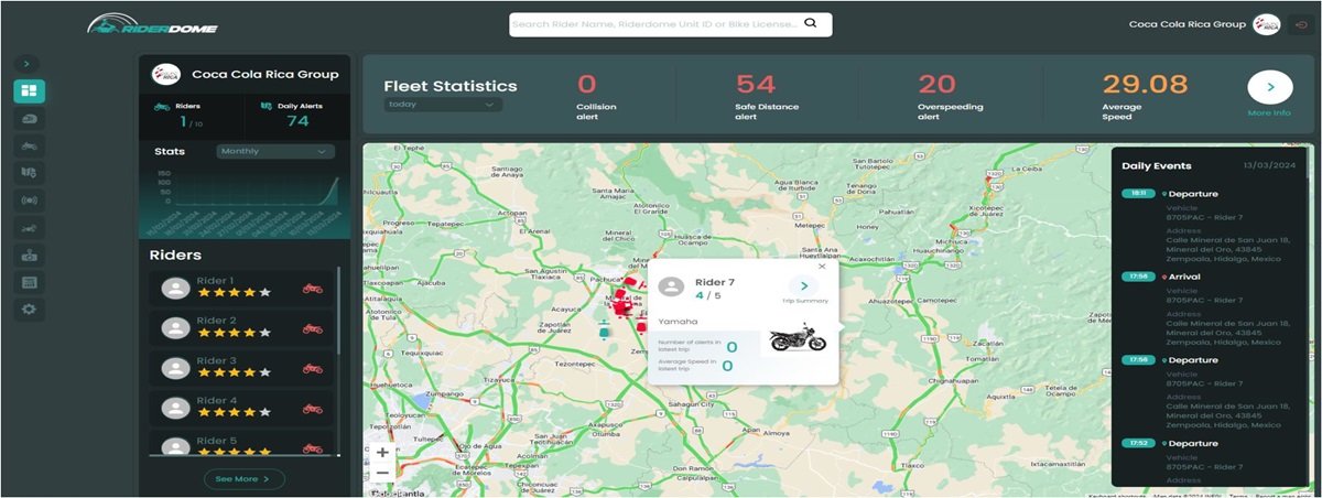 Both companies and public organizations rely on motorcycle fleets, which are deployed across areas as broad as food delivery to emergency response. Depending on the type of business or task, riders may find themselves navigating congested urban mazes or through remote landscapes, as well as everything in between. Given their diverse deployment scenarios, motorcycle fleets and their managers face the unique challenge of maintaining operational efficiency while ensuring the safety of their riders.