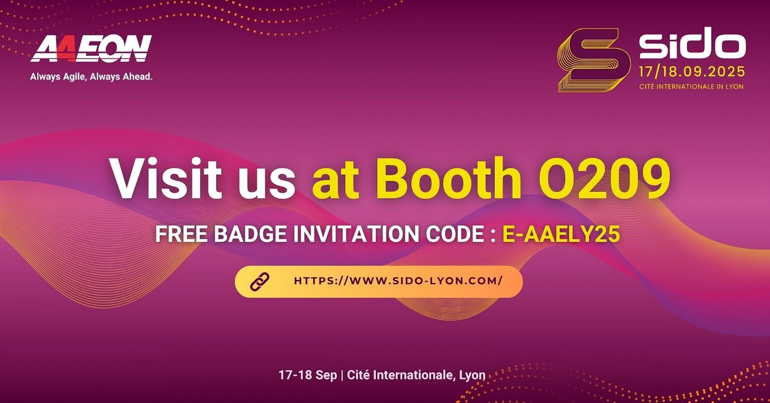 (Eindhoven, Netherlands – September 4, 2025) AAEON (Stock Code: 6579), a leading provider of industrial IoT and AI Edge solutions, will be exhibiting a range of live demonstrations featuring both new and upcoming products at Booth #O209 of SIDO Lyon from September 17 to September 18, 2025.